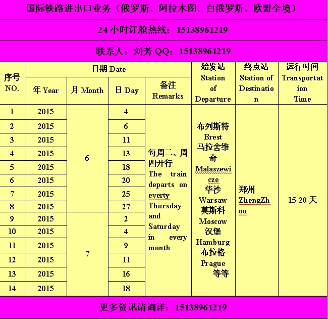郑欧铁路专线 每周2 4 6 5准时发车 进出口皆可 杜伊斯堡铁路专线 整柜
