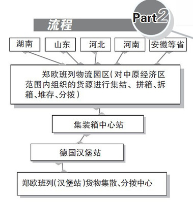 三年来,郑欧铁路在德国开设分公司,在波兰、白俄罗斯等国家设有办事处,在汉堡、华沙、布拉格、杜伊斯堡、巴黎、米兰等有专门的仓库、堆场及报关行,在欧洲建成了完善的集疏线路;国内能为客户提供国内外“门到门”式提货、配送、运输、仓储、分拨、报关报检、金融等一体化物流服务。