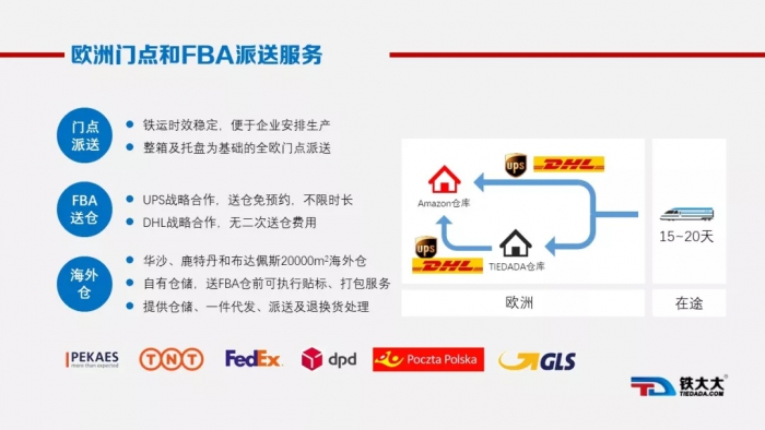 为了向跨境电商企业提供高品质的一站式国际物流服务,铁大大在华沙、鹿特丹和布达佩斯建立了20000㎡跨境电商海外仓库,提供仓储、一件代发、派送及退换货处理服务;同时铁大大德国、荷兰、波兰公司还经营税务代理业务,能够提供税号及正规清关服务,整箱和托盘门点派送、FBA头程服务覆盖全欧所有地区。